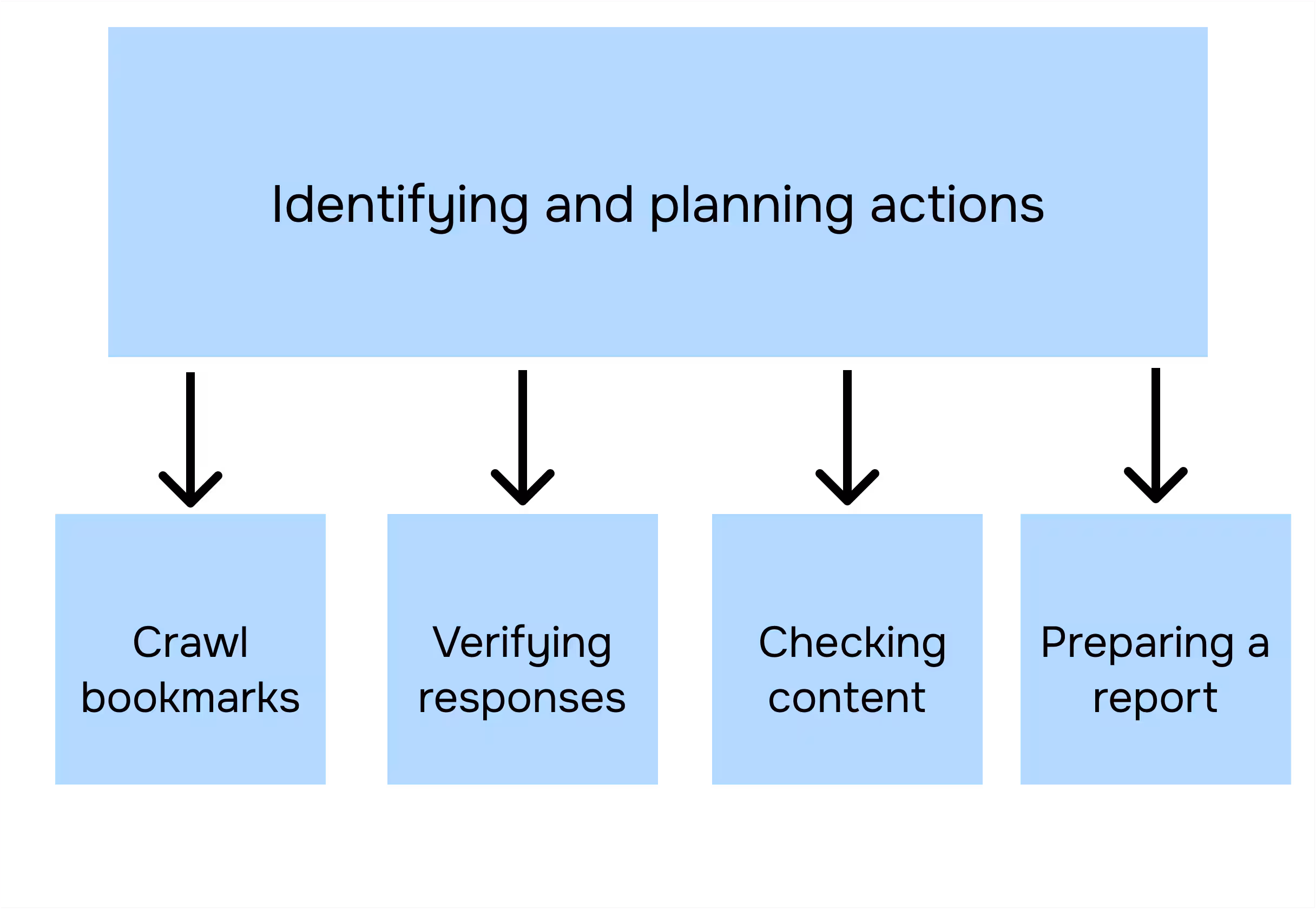 The agent analyzes users prompt and breaks it into subtasks, then transforms every subtask into action.
