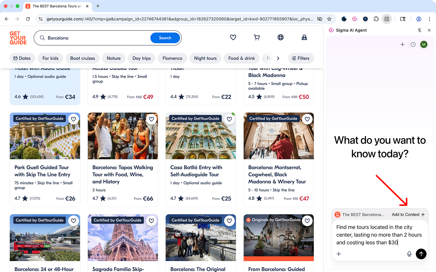 - Open Sigma Browser's sidebar panel and look for the "Add page to context" option.