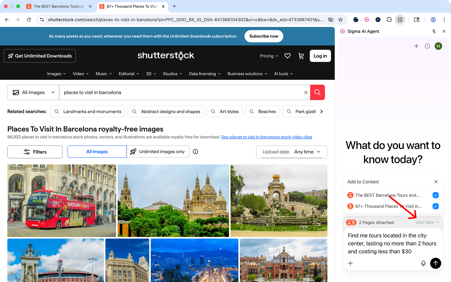 - You can combine multiple tabs to build a richer context for a single question